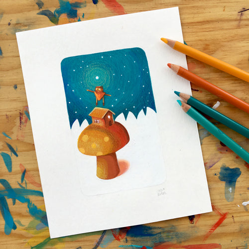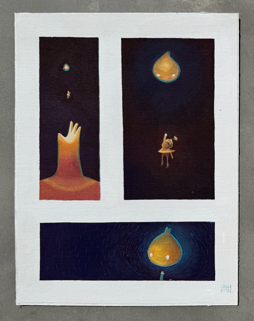Entre árboles gigantes y luz suave, Puc aparece atento a los sonidos del bosque. La escena evoca el instante en que una criatura pequeña descubre que el mundo es mucho más grande y misterioso de lo que imaginaba.
